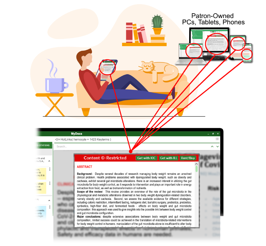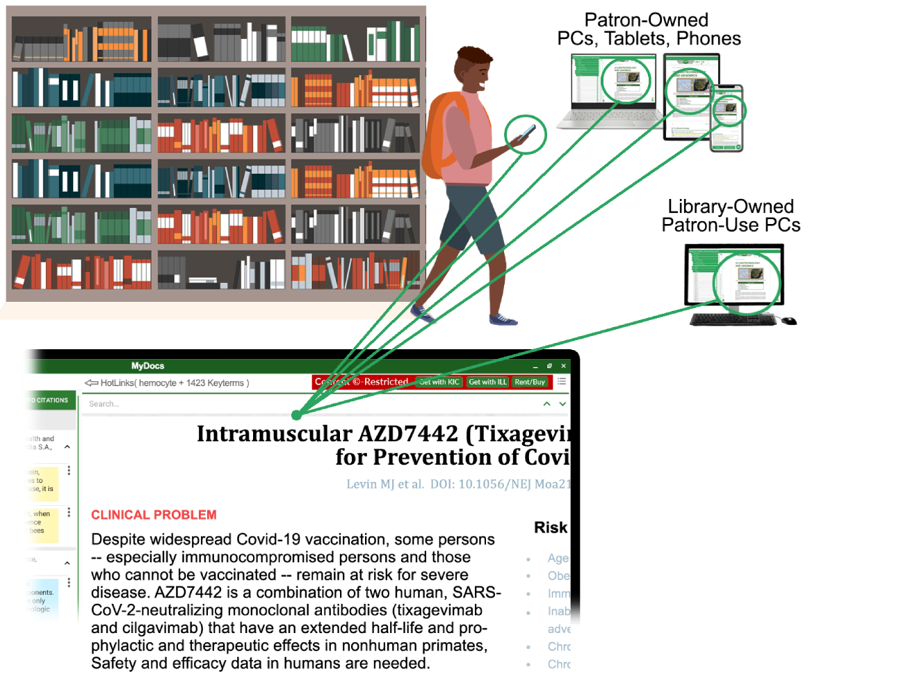 tablets and phones as well as patron-use PCs to read the content of any item in the library that has